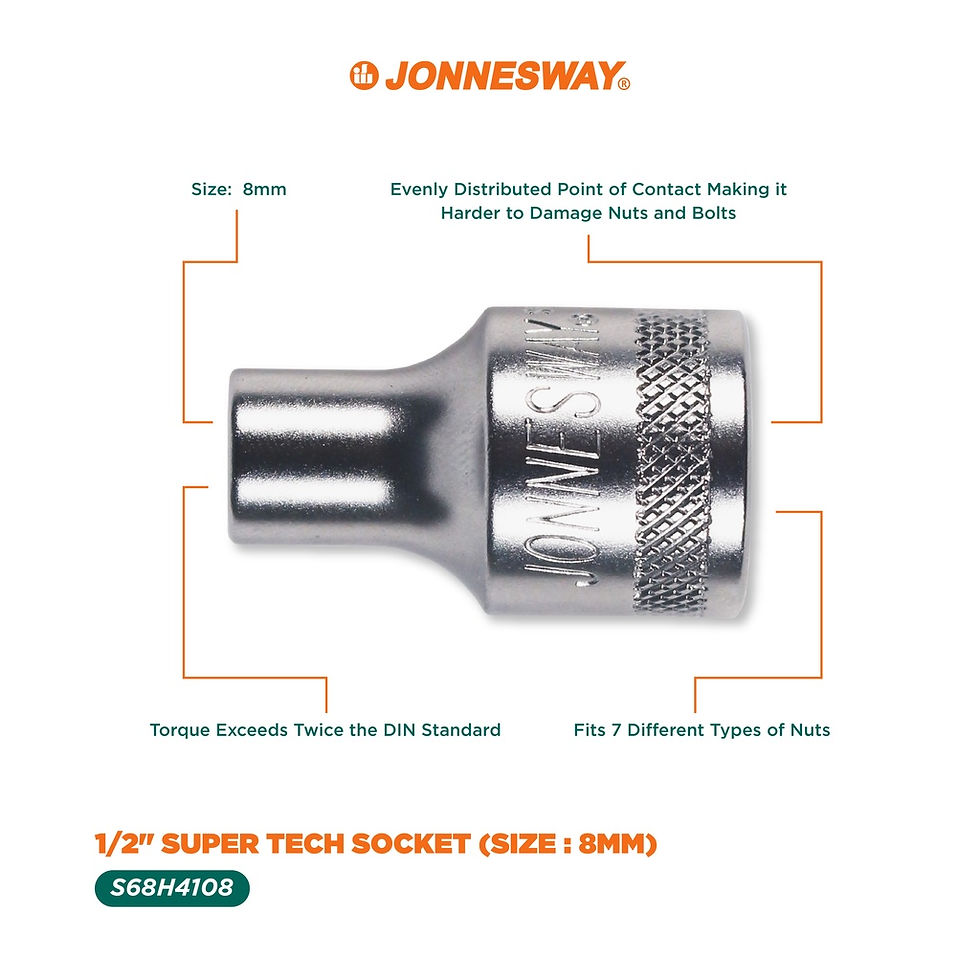 Jonnesway 1/2" SUPER TECH SOCKET (SIZE : 8MM) -S68H4108